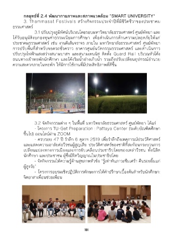 3.2 จัดกิจกรรมต่าง ๆ ในพื้นที่ มหาวิทยาลัยธรรมศาสตร์ ศูนย์พัทยา ได้แก่