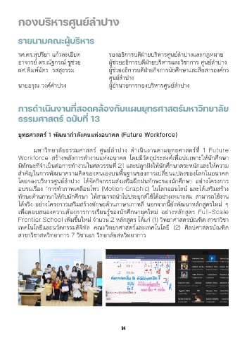 มหาวิทยาลัยธรรมศาสตร์ ศูนย์ลำาปาง ดำาเนินงานตามยุทธศาสตร์ที่ 1 Future