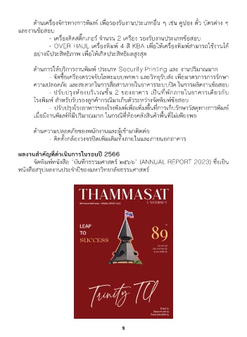 จัดพิมพ์หนังสือ “บันทึกธรรมศาสตร์ ๒๕๖๖” (ANNUAL REPORT 2023) ซึ่งเป็น