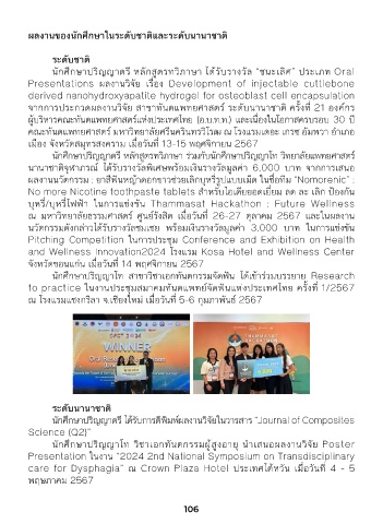 จากการประกวดผลงานวิจัย สาขาทันตแพทยศาสตร์ ระดับนานาชาติ ครั้งที� 21 องค์กร พฤศจิกายน 2567