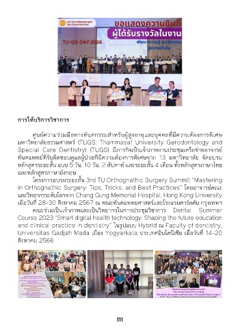จำานวน 2 คน และประเภทการตีพิมพ์บทความวิจัย รางวัล “TOP10 Q1” จำานวน 4 คน คณะร่วมเป็นเจ้าภาพและเป็นวิทยากรในการประชุมวิชาการ Dental Summer