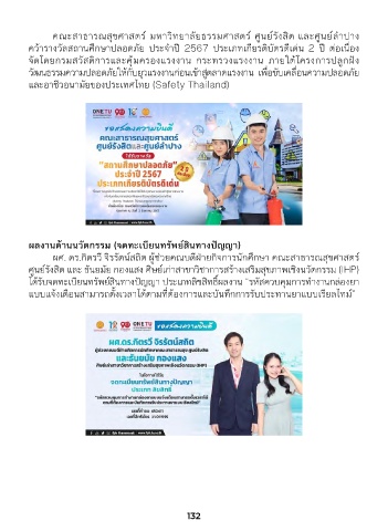 คว้ารางวัลสถุานศึกษาปลอดภัย ประจำาปี 2567 ประเภทเกียรติบัตรดีเด่น 2 ปี ต่อเนื�อง ทรัพย์สินทางปัญญา ประเภท สิทธิบัตรการออกแบบผลิตภัณฑ์ ‘เก้าอี้’