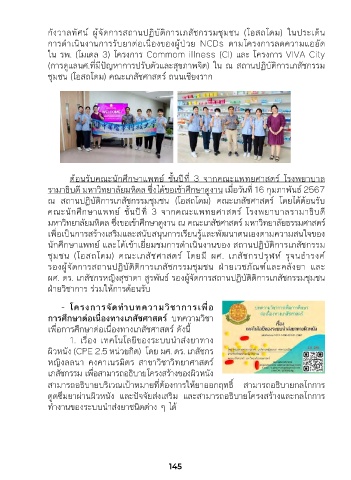 จึงจัดกิจกรรมงานสัปดาห์เภสัชกรรม ระหว่างวันที� 24 – 30 มิถุุนายน 2567 นักศึกษาแพทย์ และได้เข้าเยี�ยมชมการดำาเนินงานของ สถุานปฏิิบัติการเภสัชกรรม
