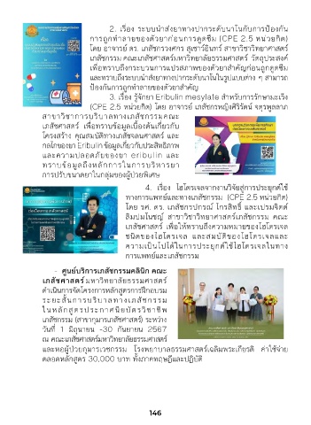 การถุูกทำาลายของตัวยาก่อนการดูดซ็ึม (CPE 2.5 หน่วยกิต) (Pharmaceutical Sciences Service Center) ในรอบปี 2567 ที�ผ่านมา