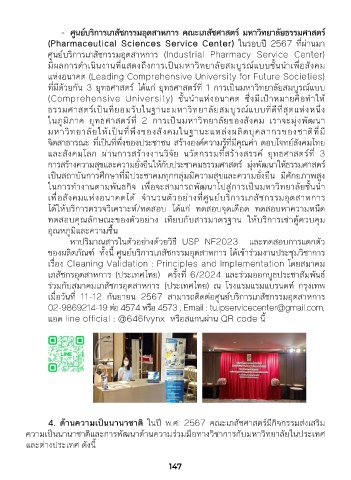4. ด้านความเป็็นนานาชั้าติ ในปี พ.ศ. 2567 คณะเภสัชศาสตร์มีกิจกรรมส่งเสริม