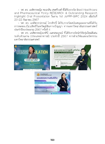 - รศ. ดร. เภสัชกรหญิง ชะอรสิน สุขศรีวงศ์ ที�ได้รับรางวัล Best Healthcare