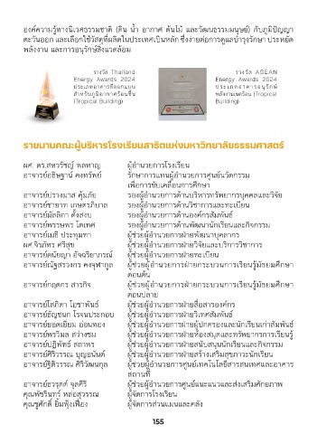 ทรัพยากรธรรมชาติและสิ�งแวดล้อม 3) ปี 2567 ได้รับรางวัล Thailand Energy Awards อาจารย์ธัญชนก โรจนประกอบ ผู้ช่วยผู้อำานวยการฝ่ายวิเทศสัมพันธ์