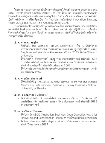 - ได้รับรางวัล ABDC (Australian Business Dean Councils) Award for