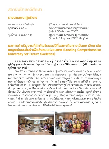 การป็ระชัุ้มรับูฟังความคิดเห็นผู้เก่�ยวข้องในโครงการจุัดที่ำาข้อมูลัมรดก ในคุณค่าของความเป็นไทย) และ Academic Research (การศึกษาวิจัยทางวิชาการ) และ
