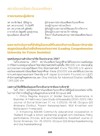 ทีุ่นสนับูสนุนงานดำาเนินงานวิจุัย ป็ีงบูป็ระมาณ์ 2567 Affairs: An American Review 51, no. 2 (2024): 80-89. [Scopus Q3]