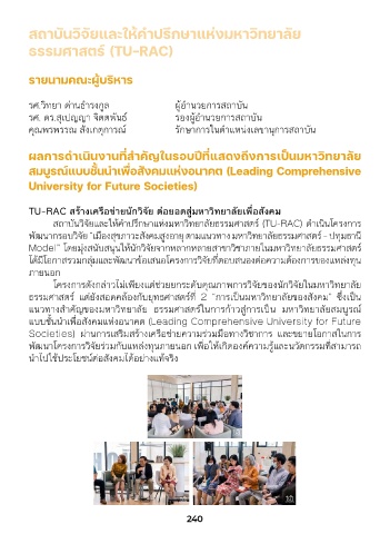 สถึาบันวิจัยและให้คำาปรึกษาแห่งมหาวิทยาลัย TU-RAC ขับูเคลั่�อนองค์ความรู้ สู่สังคมแห่งอนาคต
