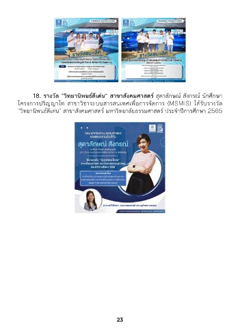 18. รางวัลั “วิที่ยานิพื่นธิ์ด่เด่น” สาขาสังคมศาสตร์ สุดาลักษณ์ สังกรณ์ นักศึกษา