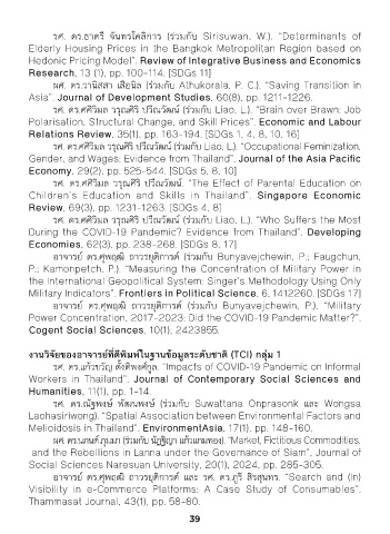 Thailand”. EnvironmentAsia, 17(1), pp. 148–160. [SDGs 3, 11, 17] อาจารย์ ดร.ศุพฤฒิ ถุาวรยุติการต์ (ร่วมกับ Bunyavejchewin, P.; Faugchun,