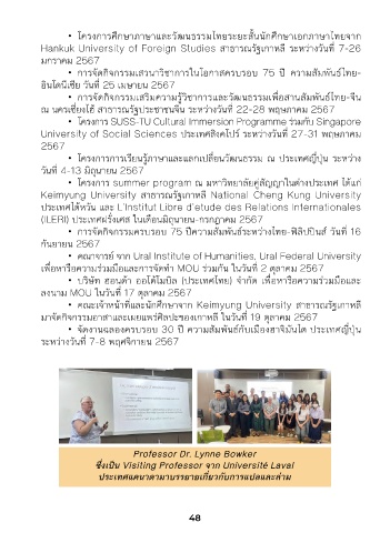 ซึ่่�งเป็็น Visiting Professor จาก Université Laval การเร่ยนการสอนและจัดกิจกรรมร่วมกับนักศ่กษัา