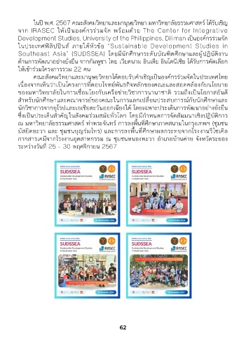 Southeast Asia” (SUDSSEA) โดยมีนักศึกษาระดับบัณฑิตศึกษาและผู้ปฏิิบัติงาน