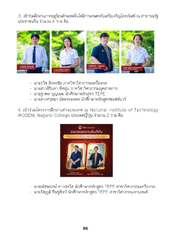 (KOSEN), Nagano College ประเทศญี�ปุ่น จำานวน 2 ราย คือ - ศ. ดร.สมชาติ ฉ้ันทศิริวรรณ ภาควิชาวิศวกรรมเครื�องกล