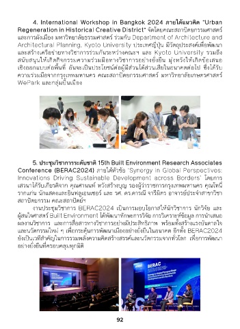 และนวัตกรรมใหม่ ๆ เพื�อกระตุ้นการพัฒนาเมืองอย่างยั�งยืนในอนาคต อีกทั้ง BERAC2024
