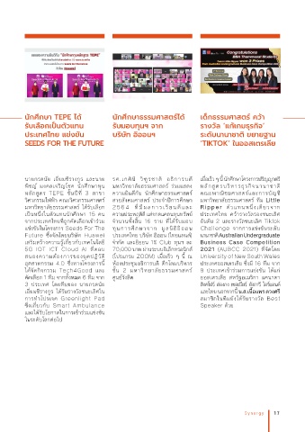 จากประเทศไทยที่ถูกคัดเลือกเข้าร่วม จ�านวนทั้งสิ้น 16 ราย ที่ได้รับมอบ อันดับ 2 และรางวัลชนะเลิศ Tiktok