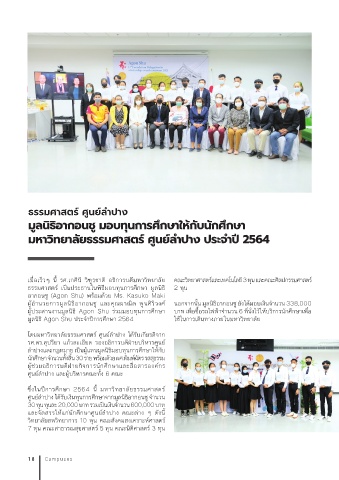 ศูนย์ล�าปาง ได้รับเงินทุนการศึกษาจากมูลนิธิอากอนชู จ�านวน