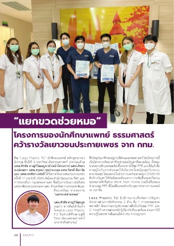ที่ีมื่ “Less Plastic TU” นัก่ศึก่ษาแพูที่ย์ หลัก่สัูติรุภาษา ซึ่ึ�งป็ัจจุบันมื่าศึก่ษาอยู่ภายใติ้คณะแพูที่ยศาสัติรุ์ โดยโครุงก่ารุนี�