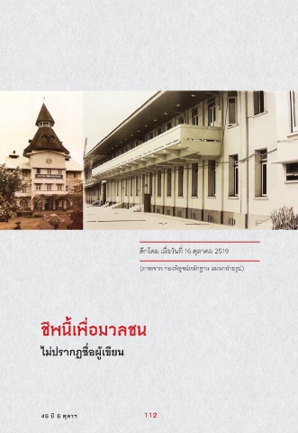 ่ ่ ตุ่กโดิม เมือวิันีทีี 16 ตุุลาคม 2519 (ภิาพจาก กองพิสุูจนี์หลักฐานี แผู้นีกถ่ายรูปี) ชีพนี้เพื่อมวลชน ่ ไม่ปรั้�กฏช่อผู้เข้่ยน 46 ปี 6 ตุลาฯ 112