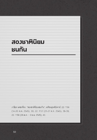 สองชาตุินิิยม ชนิกันิ เกษิีย์ร เตุชัะพีระ. “สองชัาตุ์นั์ย์มชันักันั”, มติชีนสูุ้ดุสู้ัปดุาห้์, 22: 1156 (14-20 ตุ.ค. 2545), 30; 22: 1157 (21-27 ตุ.ค. 2545), 38-39; 22: 1158 (28 ตุ.ค. - 3 พ.ย์. 2545), 43. 52