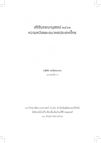 ปรีดีบรรณานุสรณ์ ๒๕๖๒ ความหวังและอนาคตประเทศไทย กษิดิศ อนันทนาธร บรรณาธิการ มหาวิทยาลัยธรรมศาสตร์ ร่วมกับ สำานักพิมพ์สยามปริทัศน์ จัดพิมพ์เป็นที่ระลึกเนื่องในวันปรีดี พนมยงค์ ๑๑ พฤษภาคม ๒๕๖๒ 3