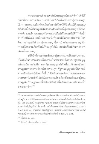 ไว้ว่า “ระบบการเมืองที่จะเป็นประชาธิปไตยได้ก็จําต้องมีรัฐธรรมนูญ