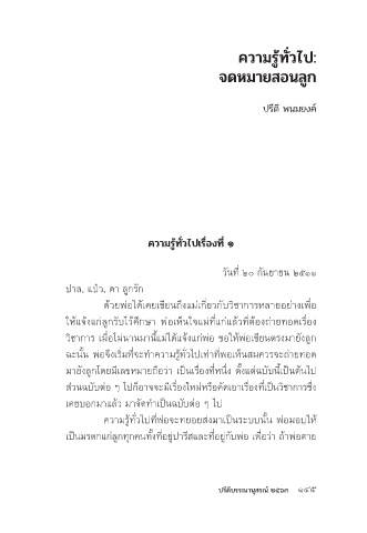 ฉะนั้น พ่อจึงเริ่มที่จะทำาความรู้ทั่วไปเท่าที่พอเห็นสมควรจะถ่ายทอด